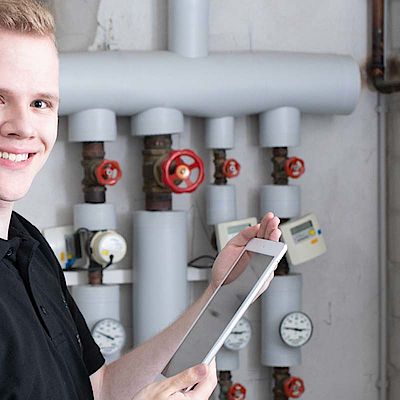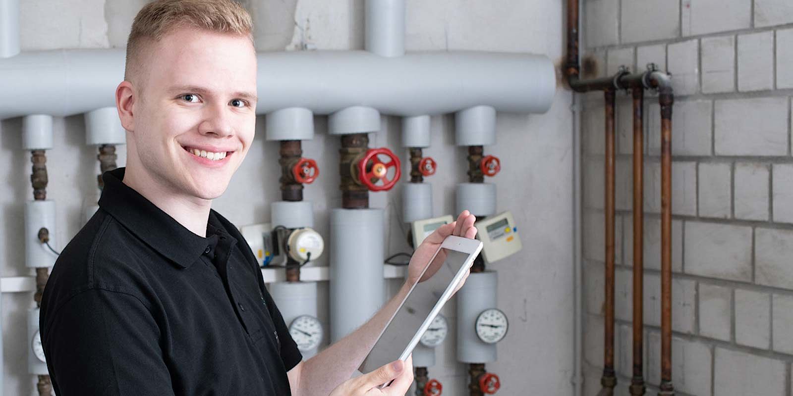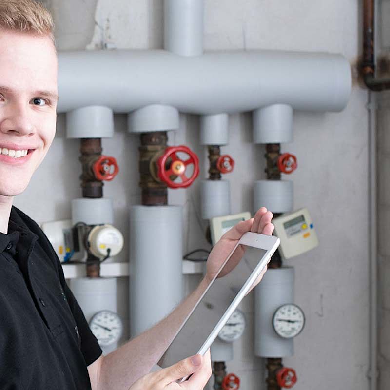 Andy ist Anlagenmechaniker für Sanitär, Heizung und Klima bei der Firma Wilhelm Meier mit Leib und Seele. In seinem Job stattet er Haushalte und Betriebe mit der passenden Heizungstechnik aus, baut Anlagen für die Wasserver- und entsorgung, richtet moderne Bäder ein und kümmert sich um umweltschonende Energietechnik.