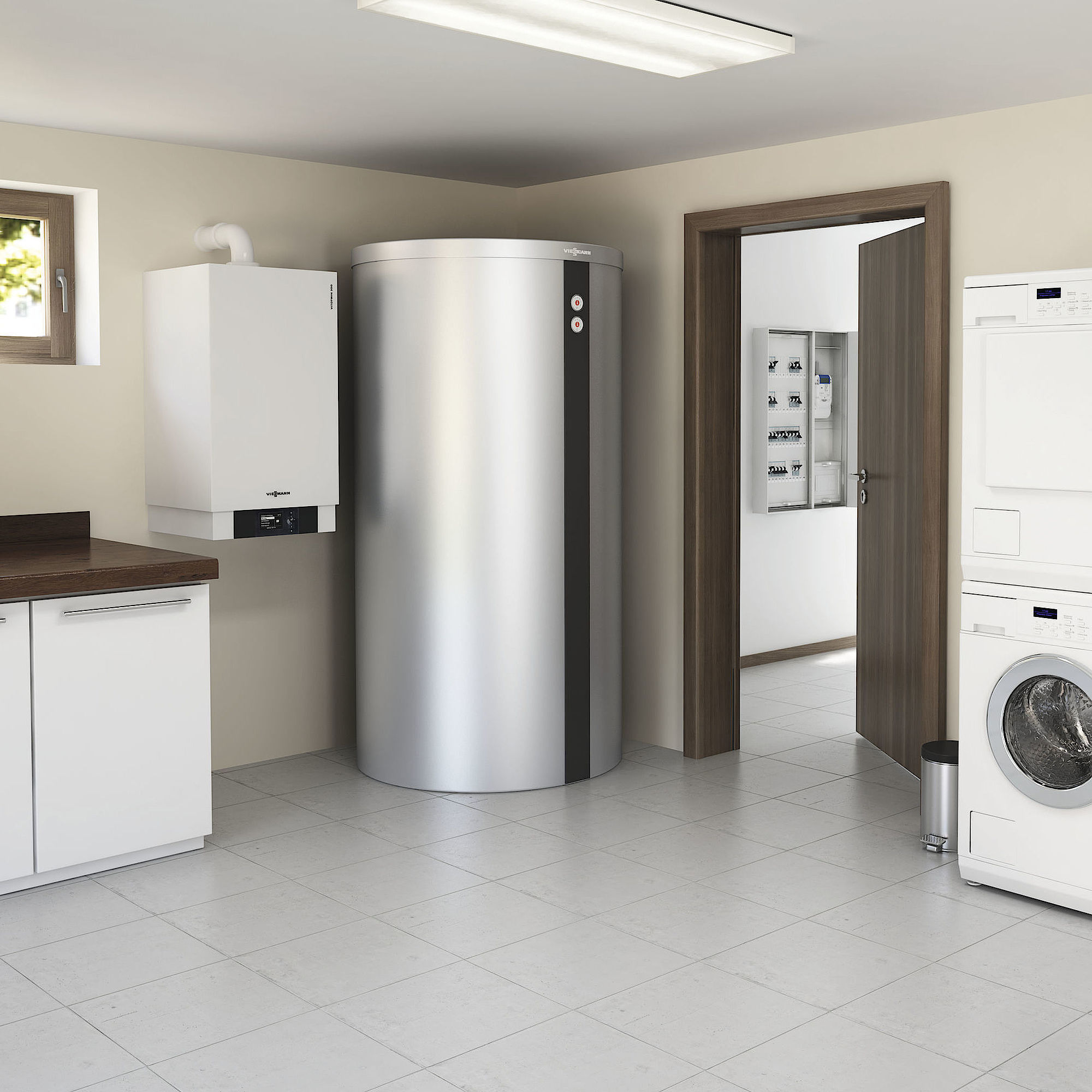 • Geringer Platzbedarf aufgrund kompakter Heizkessel