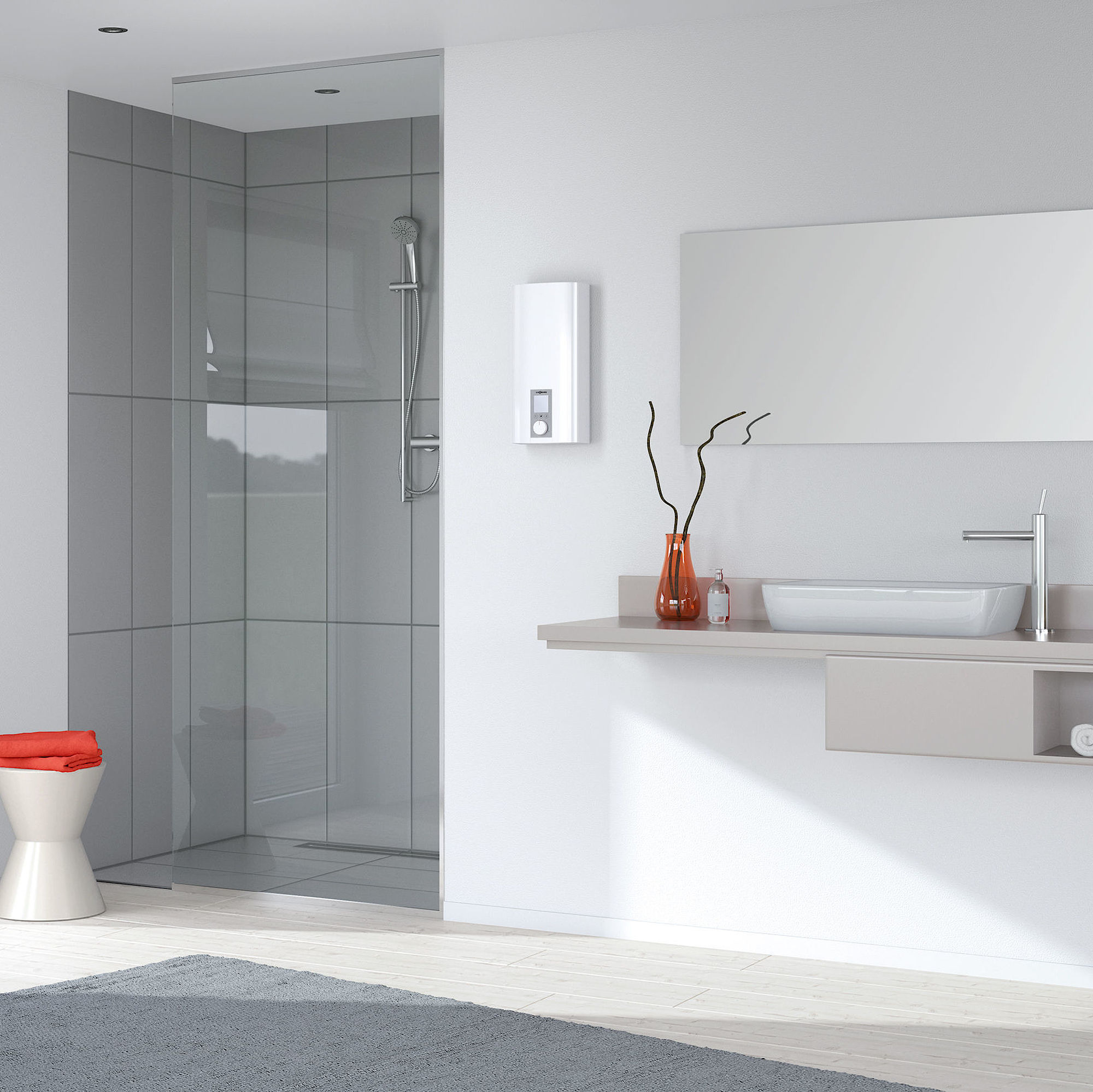 Elektroheizungen ermöglichen die unabhängige Beheizung einzelner Räume, sollten jedoch eher als Übergangslösung betrachtet werden. Der günstigen Anschaffung und einfachen Bedienung der Heizung stehen hohe Betriebskosten und CO2-Emissionen gegenüber. Moderne Infrarotheizungen sind zwar streng genommen ebenfalls Elektroheizungen, sie funktionieren jedoch nach einem anderen Prinzip: Ihre Strahlungswärme erwärmt nicht die Raumluft, sondern die Wände, Decken, Möbel und Körper direkt. So lassen sie sich gut in bestehende Raumkonzepte integrieren, beispielsweise als Spiegelheizungen im Badezimmer.