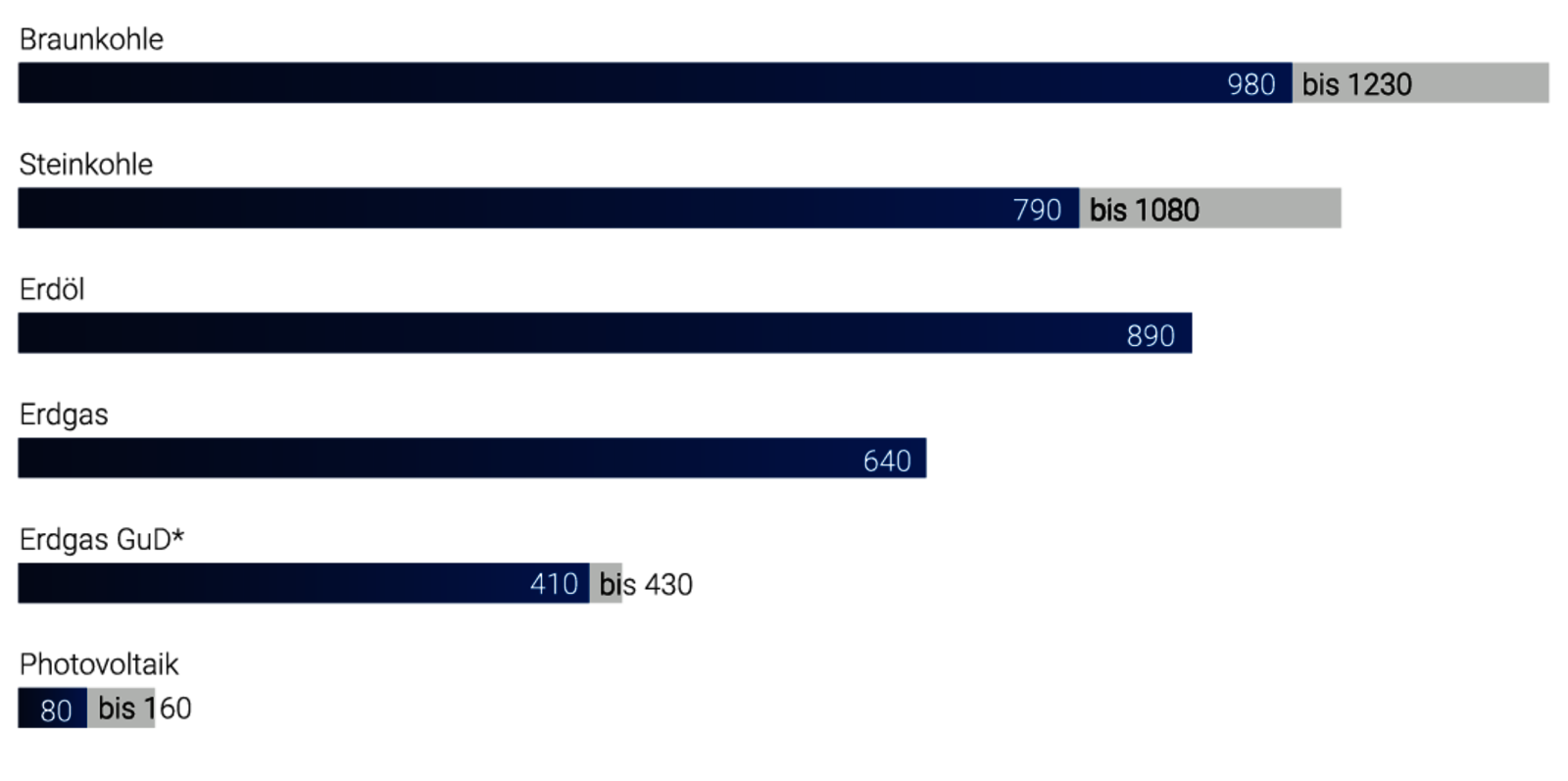 Emissionen von CO2 in Gramm pro Kilowattstunde
