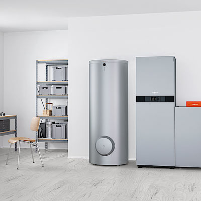 Nutzen Sie die Sonnenenergie gleich doppelt: In der Kombination mit einer Solarthermie-Anlage lässt sich die Solarwärme direkt in den Heizkreiskreislauf einspeisen, in der Regel wird sie in einem Solar­speicher zwischengelagert. Wenn der Solarspeicher gefüllt ist, wird überschüssige Solarwärme zum Beispiel ins Erdreich geführt, so dass dieses nicht zu sehr auskühlt.