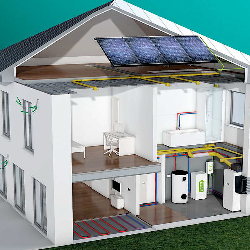 • Anteilige Nutzung erneuerbarer Energien (z. B. als Kombination mit einer Wärmepumpe oder einer Solarthermieanlage)