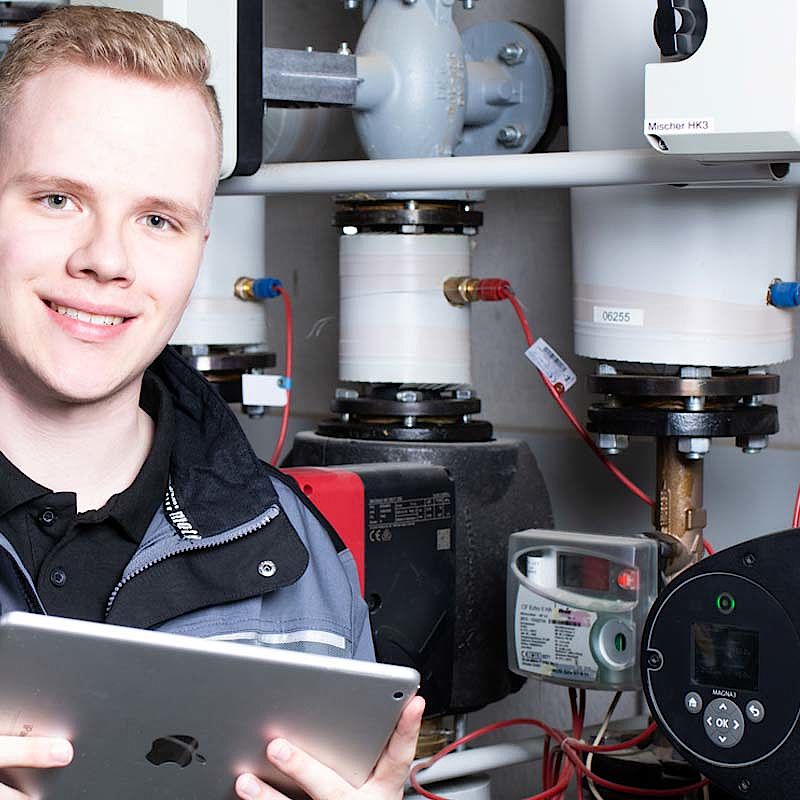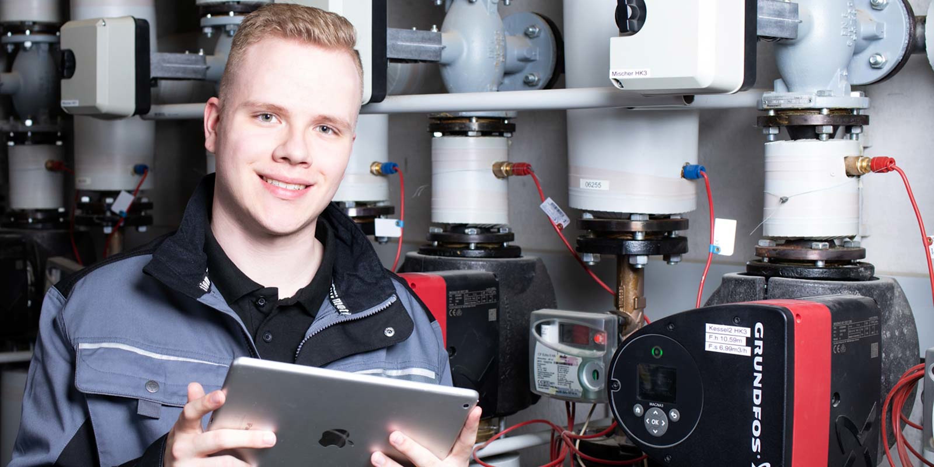 Langeweile kommt in Andys Arbeitsalltag sicher nicht auf, denn als Anlagenmechaniker für Sanitär-, Heizungs- und Klimatechnik ist er der Experte in Sachen Gebäudetechnik. Ob im Betrieb oder beim Kunden: Mit Köpfchen und Geschick sorgt er dafür, dass die Heizungsanlage einwandfrei läuft, setzt die Pläne und Ideen zu erneuerbaren Energien um oder stellt eine optimale Energienutzung sicher. Andys Einsatzgebiete sind vielfältig und abwechslungsreich. Er ist Planungstalent, Teamplayer, Kundenberater und Energieexperte in einem und hat den absoluten Durchblick, wenn es um Versorgungssysteme geht.