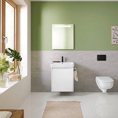 „Unsere modernisierten Badmöbel Renova Plan und Renova Compact sind für nahezu jede Bausituation geeignet“, erklärt Susanne Behm, Produktmanagerin Badezimmersysteme bei Geberit. „Unser Ziel war es, eine Lösung zu schaffen, die sowohl Endkunden als auch Profis überzeugt: ästhetisch, funktional und zu einem attraktiven Preis.“ Mit dem überarbeiteten Möbelsortiment bietet Geberit eine Badlösung, die Design, Komfort und einfache Handhabung vereint – zu einem Preis-Leistungs-Verhältnis, das sich für unterschiedliche Wohnkonzepte eignet: die erste eigene Wohnung, das Familienbad oder ganze Wohnbauprojekte.