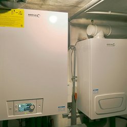 Fazit: Das Zweifamilienhaus aus den 1930er-Jahren wurde auf eine für einen solchen Altbau geradezu idealtypische Weise energetisch saniert. Die (Um-)Baumaßnahmen wurden mit einem Zuschuss der BAFA in Höhe von 30% gefördert. Die Grundlast der hybriden Heizungsanlage wird durch eine Luft-/Wasser-Wärmepumpe BRÖTJE BLW Mono-P 6 OH abgedeckt, ergänzt um einen wandhängenden BRÖTJE Gas-Brennwertkessel WGB EVO 15 i. Dieser wird ebenfalls über die Regelung der Wärmepumpe angesteuert. Die Wärmepumpe und die Warmwasserbereitung werden bevorzugt mit dem Strom der hauseigenen Photovoltaikanlage betrieben.